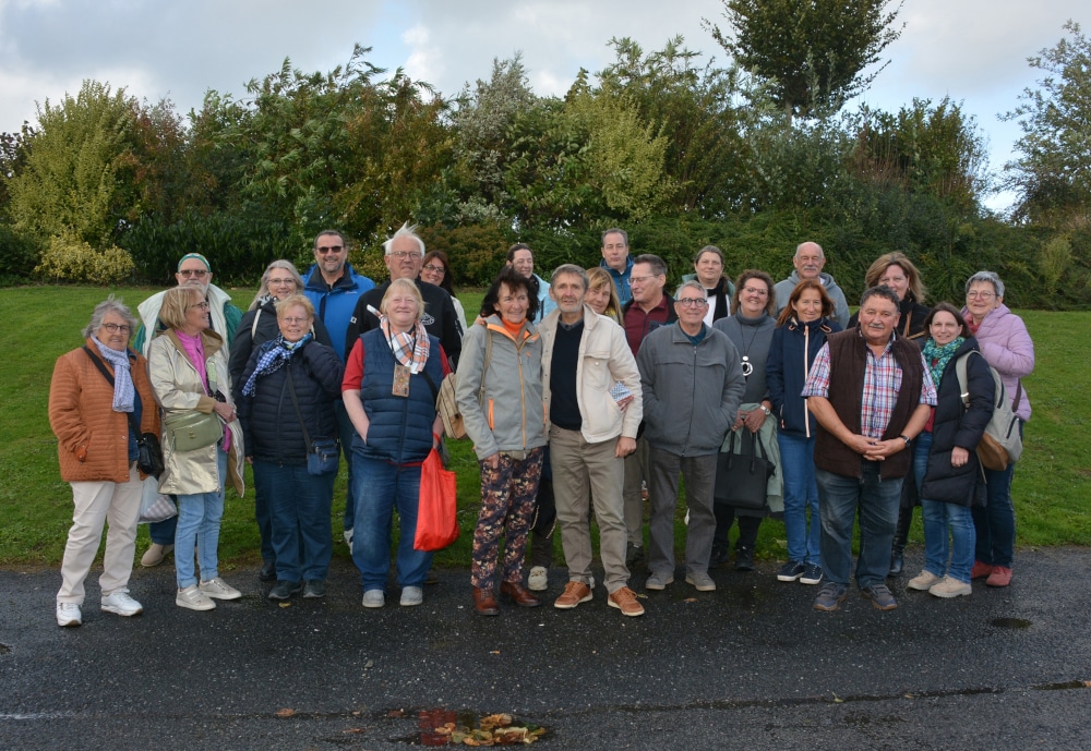 Die zweisprachige Führung durch das beeindruckende Museum enthielt viel wissenswertes und so manche Anekdote aus alten Zeiten. Zahlreiche gewebte Andenken wurde als Souvenir erworben. Abends traf man sich dann auf einem Cover-Band Konzert in Fauville mit den eingängigen Liedern der New-Wave-Band „The Police“, eingeleitet durch die Hits von Sting zu einfühlsamen Gitarrenklängen, welches für Kurzweil und eine lange Nacht sorgte. Gut ausgeruht wurde der Sonntag traditionsgemäß in den einzelnen Familien verbracht, die Ihren Grafschafter Gästen gerne die Umgebung zeigten, die nicht selten die traumhaft schöne Alabaster-Küste in Étreta beinhaltete oder in die vielen anderen kleinen pittoresken Ortschaften führte. Auch das städtische Flair von Le Havre und Rouen, mit seiner beeindruckenden Kathedrale, waren beliebte Ausflugsziele. Mit all diesen Eindrücken traf man sich abends noch einmal zu einem geselligen Abend mit allen Gastgebern und Gästen zum regen Austausch. Von der französischen Küche sowie den anti- und alkoholischen Erfrischungen der Region (Calvados) ließen sich alle gerne verwöhnen. Montagmorgen hieß es dann leider Abschied nehmen von den französischen Freunden. Am Rathaus wurde auch noch einmal die Freundschaftsglocke ins Visier genommen und geläutet. Mit dem Versprechen auf ein baldiges Wiedersehen, startete der Bus in Richtung Heimat. Die Fahrt wurde gleich genutzt, um den nächsten Besuch im Herbst 2026 wieder vorzubereiten, denn dann kommen unserer französischen Freunde wieder in die Grafschaft..